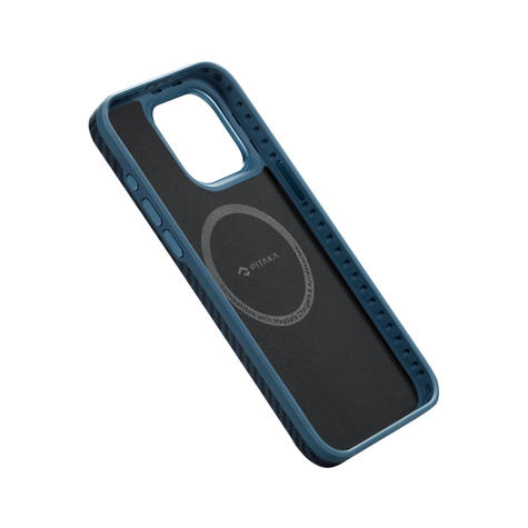 Experience the ultimate protective phone case Pitaka MagEZ Pro Case 4 iPhone 15 Pro Max - Black/Blue that combines the robustness of aramid fiber with the softness of TPU. With our revolutionary molding technique, we successfully fuse aramid fiber and TPU into a single, flawless structure that eliminates pesky seams and rough edges, creating a perfect phone case that’s not just fiercely protective, but also minimalistic and stylish, with a sleek seamless finish. Integrated powerful N52SH magnets ensure firm magnetic attachment to MagSafe accessories.