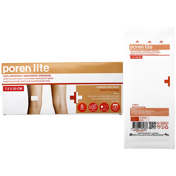 Poren-Lite Non-Adherent Absorbent Dressing 7.5 x 20cm Sterile 5/Box - White x170