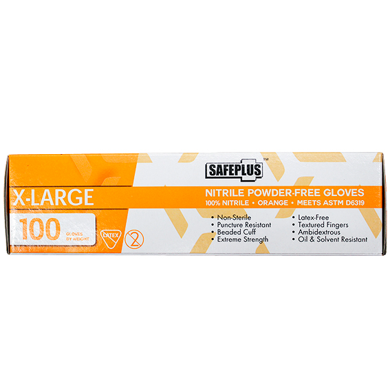 Safeplus Thick Nitrile Gloves 245mm Cuff Heavy Duty Powder Free EN374 Extra Large 100/Box - Orange x15
