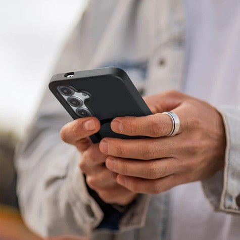 Where style meets protection. Encased Slimshield Case Samsung Galaxy S25 with Belt Clip Holster - Black brings together a sleek minimalist design with dependable durability. The case fuses a robust PC backplate and flexible TPU edges to provide a comfortable grip while delivering a reliable defense against everyday knocks and drops, thanks to the shock-absorbing bumper that cushions against impacts. Rounding out the protection is a purpose-built raised edge, which shields the screen from direct impact in case of drops. The case’s slender profile maintains the phone’s sleek appearance, and is as functional as it is beautiful with an anti-slip surface that gives secure comfort in every grip.