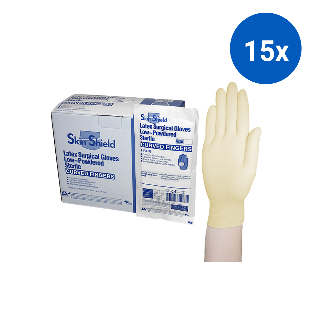 Skin Shield Biodegradable Latex Surgical Gloves Low Powder Sterile Size 6.0 50 Pairs/Box - White x15