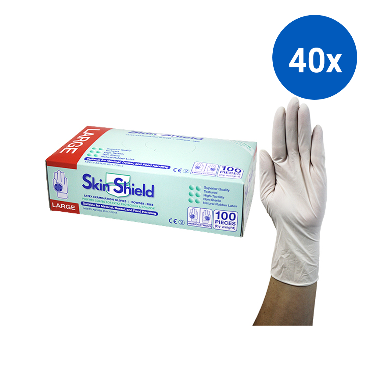 Skin Shield Latex Examination Gloves Powder Free AS/NZ HACCP Large 100/Box - Cream x40