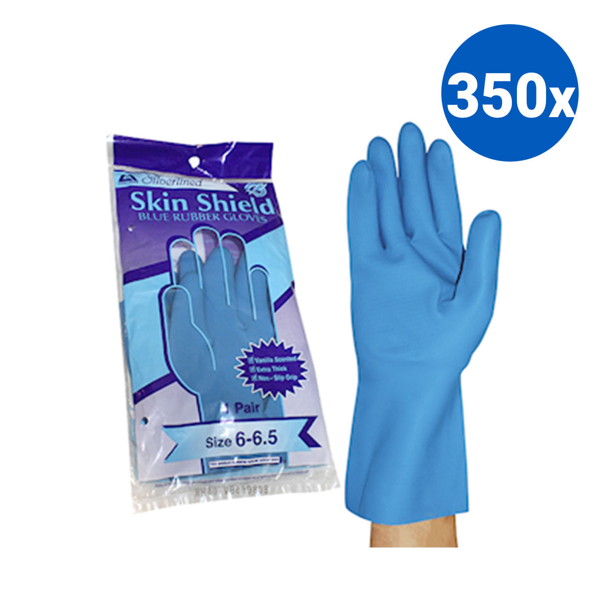 Skin Shield Silver Lined Natural Rubber Gloves Size 6-6.5 - Blue x350