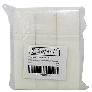 Sofeel 4-Sided White Buffer Block is a premium-grade nail care tool designed to refine and smooth acrylic, gel, or natural nails. Each block offers four functional surfaces with 150/150 grit for balanced filing and polishing, making it ideal for salon professionals or home users. The lightweight design ensures comfortable handling, while the durable material allows for sanitation and reuse. Suitable for post-application shaping or gentle buffing before polish, it helps achieve a clean, glossy finish. Supplied in packs of 3, it's a versatile addition to any manicure kit.