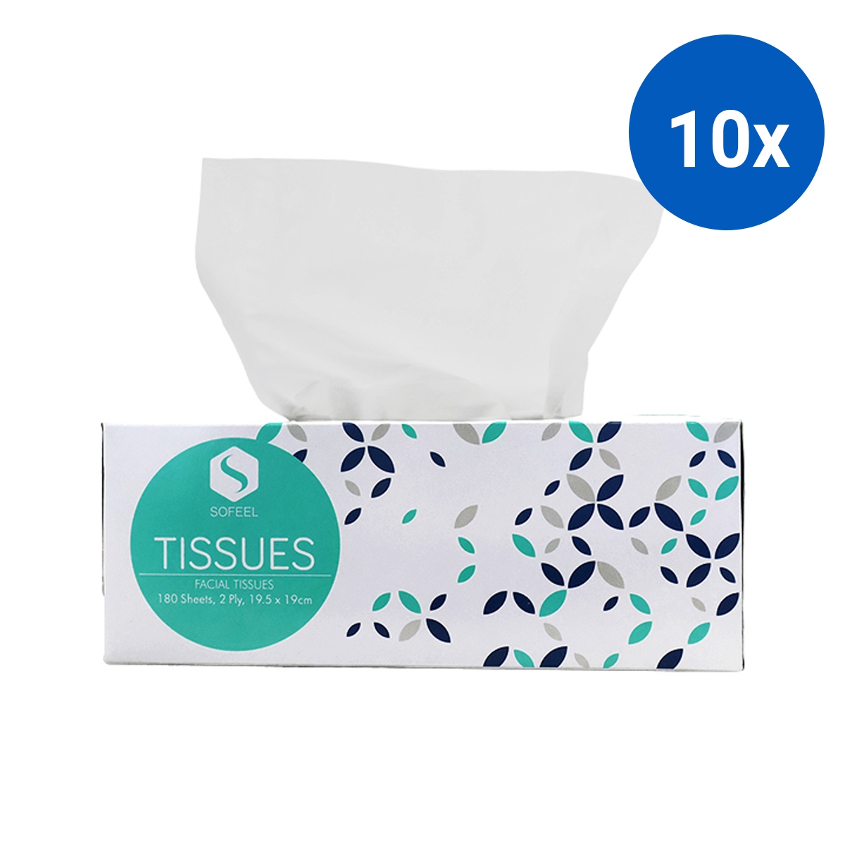 Sofeel Executive Facial Tissues 2-Ply 19.5 x 19cm 180 Sheets/Box, 36 Boxes/Carton - White x10