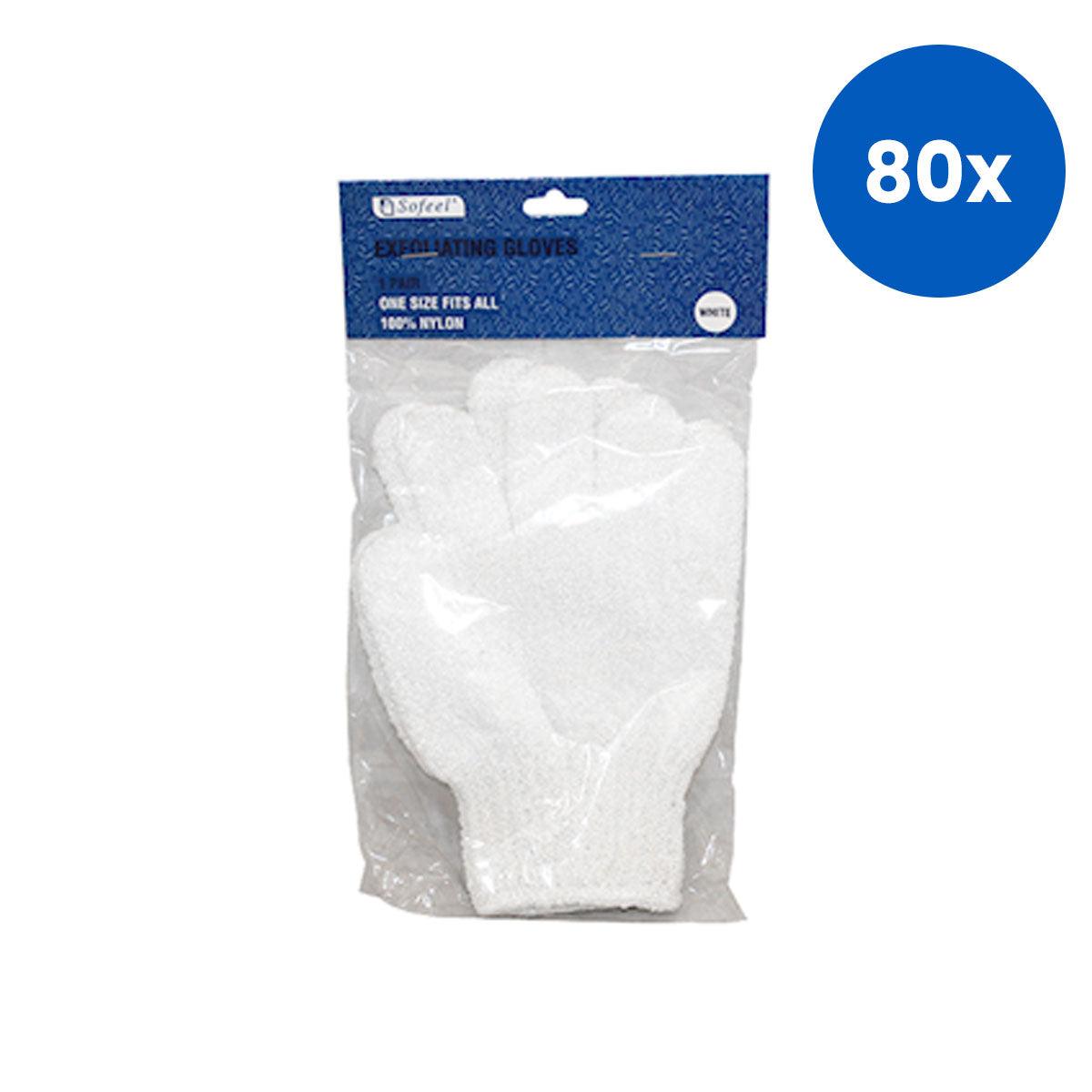 Sofeel Exfoliating Massage Gloves Nylon Fits All Sizes 2/Pack - White x80