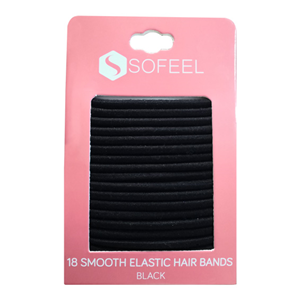 Sofeel Smooth Hair Ties offer gentle yet secure hold for all hair types, designed to minimize breakage and discomfort during all-day wear. Crafted from soft, elastic material in classic black, these bands provide a firm grip without pulling or damaging strands. Ideal for both casual and professional styling, the smooth texture glides easily through hair and resists tangling. Supplied on a convenient card with 18 pieces, they are perfect for daily use at home, salons, or on-the-go grooming kits.