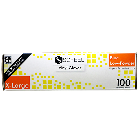 Sofeel Vinyl Gloves Recyclable 5.5g HACCP Low Powder Extra Large 100/Box - Blue x85