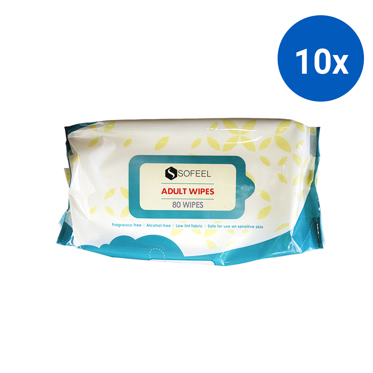 Sofeel Wet Adult Wipes with Soft Cover 21 x 26cm 80 Wipes/Pack 10 Packs/Carton - White x10