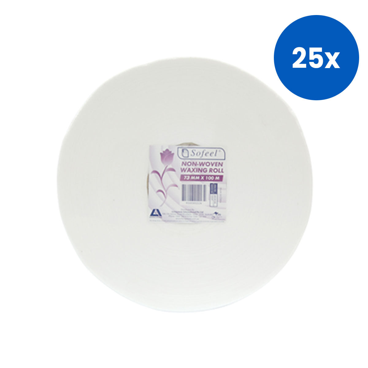 Sofeel White Cotton Waxing Roll 73mm x100 Metres Bleached & Stiffened - White x25