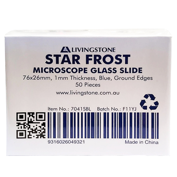 Starfrost Microscope Glass Slide 76x26mm with Blue Panel Ground Edges Germany 50/Pack - White x25