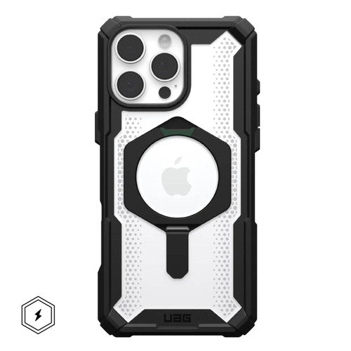 UAG Plasma XTE MagSafe Case iPhone 16 Pro Max - Black/Clear offers a perfect blend of cutting-edge design and reliable protection. This iPhone 16 Pro Max case features an integrated metal kickstand, allowing you to easily switch between landscape and portrait viewing modes for hands-free photos, video calls, and streaming. Engineered for both durability and style, its featherlight composite construction provides a sleek profile without compromising strength. With advanced air-soft corners, the case offers superior cushioning against drops, while the raised screen surround adds an extra layer of protection to guard your screen against scratches and cracks. The built-in powerful magnet module ensures seamless MagSafe charging compatibility, keeping your device charged and ready.