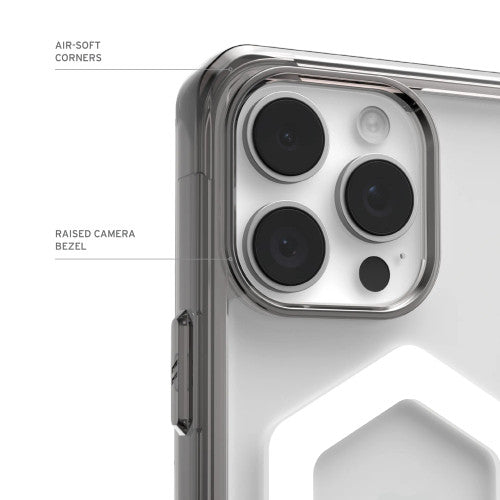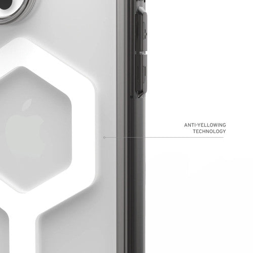 Deciding between protection or looks is a thing of the past. Our translucent UAG Plyo Magsafe Case iPhone 16 Pro Max - Ice/White combines advanced military tested drop protection with a minimalist aesthetic creating beautiful everyday armor and security for your phone. Complete with a built-in magnet for fast MagSafe charging so that you can stay on the go. With anti-yellowing properties, this edition is engineered to go even further than the last. Featuring a lightweight construction, combining a TPU shock-absorbing frame with a PC backplate, providing dependable protection without adding bulk to your device. The trusted UAG armor shell and impact resistant soft core ensure your phone is safeguarded against accidental drops and impacts. This case is designed with practicality in mind and includes scratch-resistant skid pads and air-soft corners, offering cushioning impact and additional protection. Experience premium heavy-duty protection with an eye-catching design.
