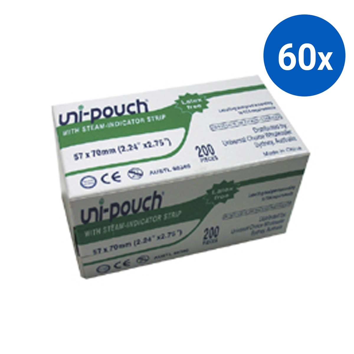 Uni-Pouch Sterilisation Pouch with Colour Change Indicator 57 x 70mm 200/Box - Clear x60