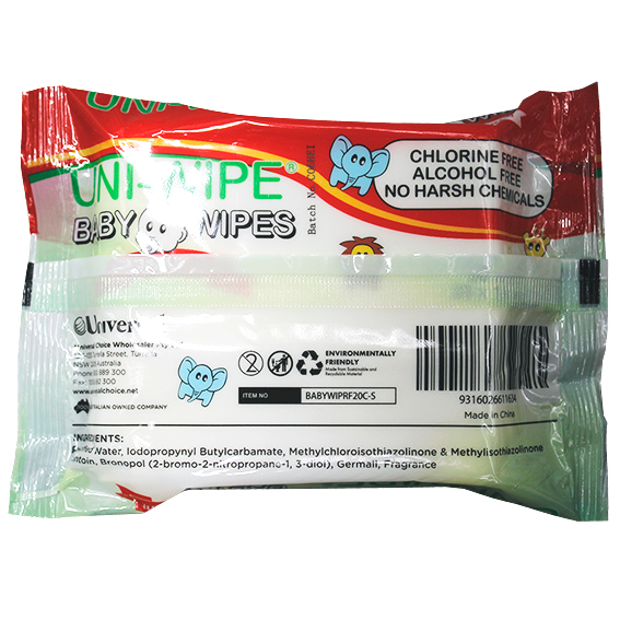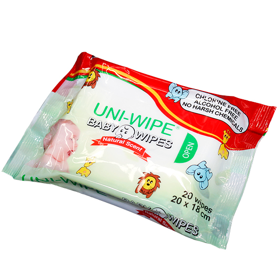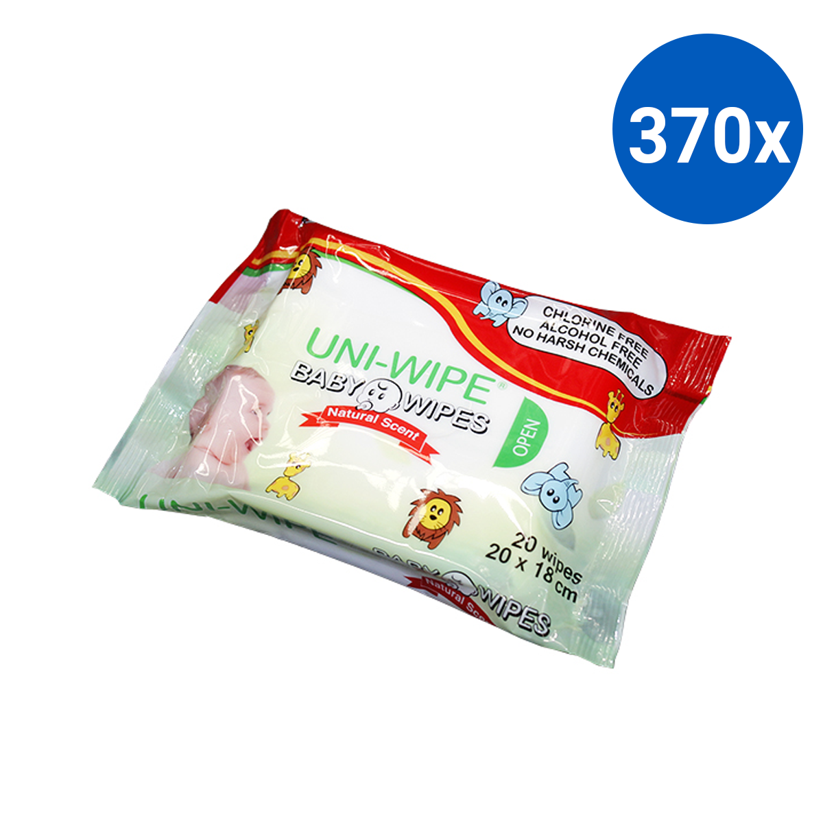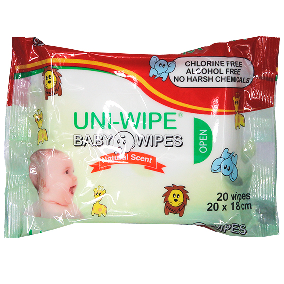 UNI-Wipe Baby Wipes Natural Scent Perfume-Free 20 x 18cm 20 Wipes/Resealable Pack - White x370