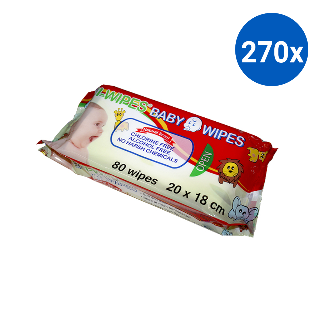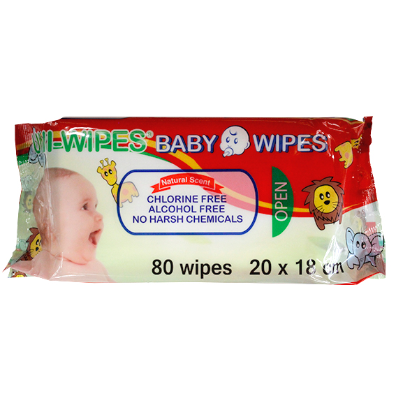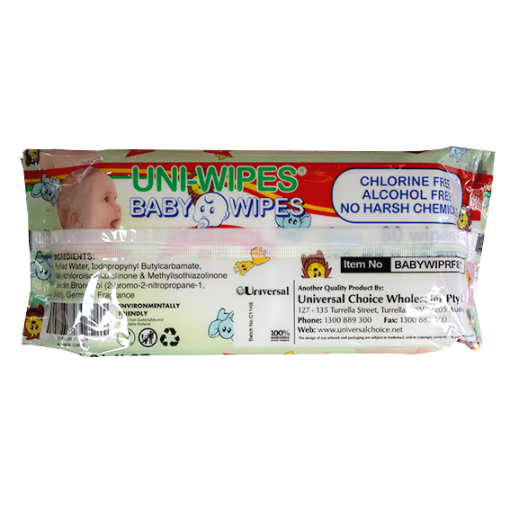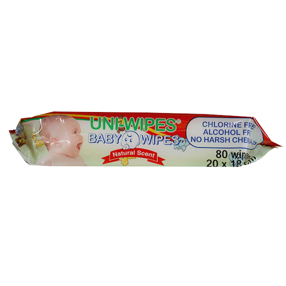 UNI-Wipe Baby Wipes Natural Scent Perfume-Free 20 x 18cm 80 Wipes Resealable Pack - White x270