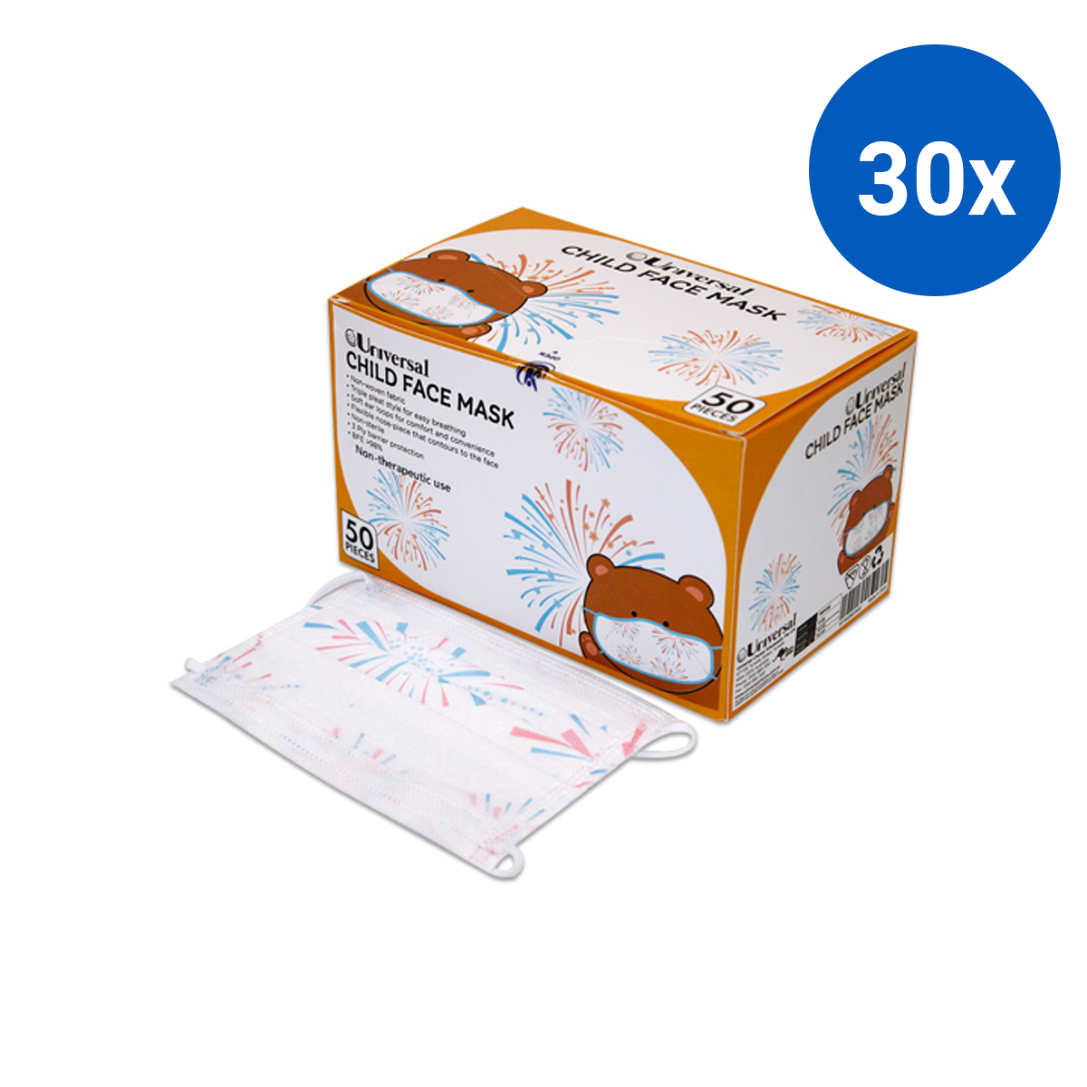 Universal Child Face Mask is latex free, non-therapeutic and made of nonwoven fabric with soft ear loops which make it safe and suitable for children to use.