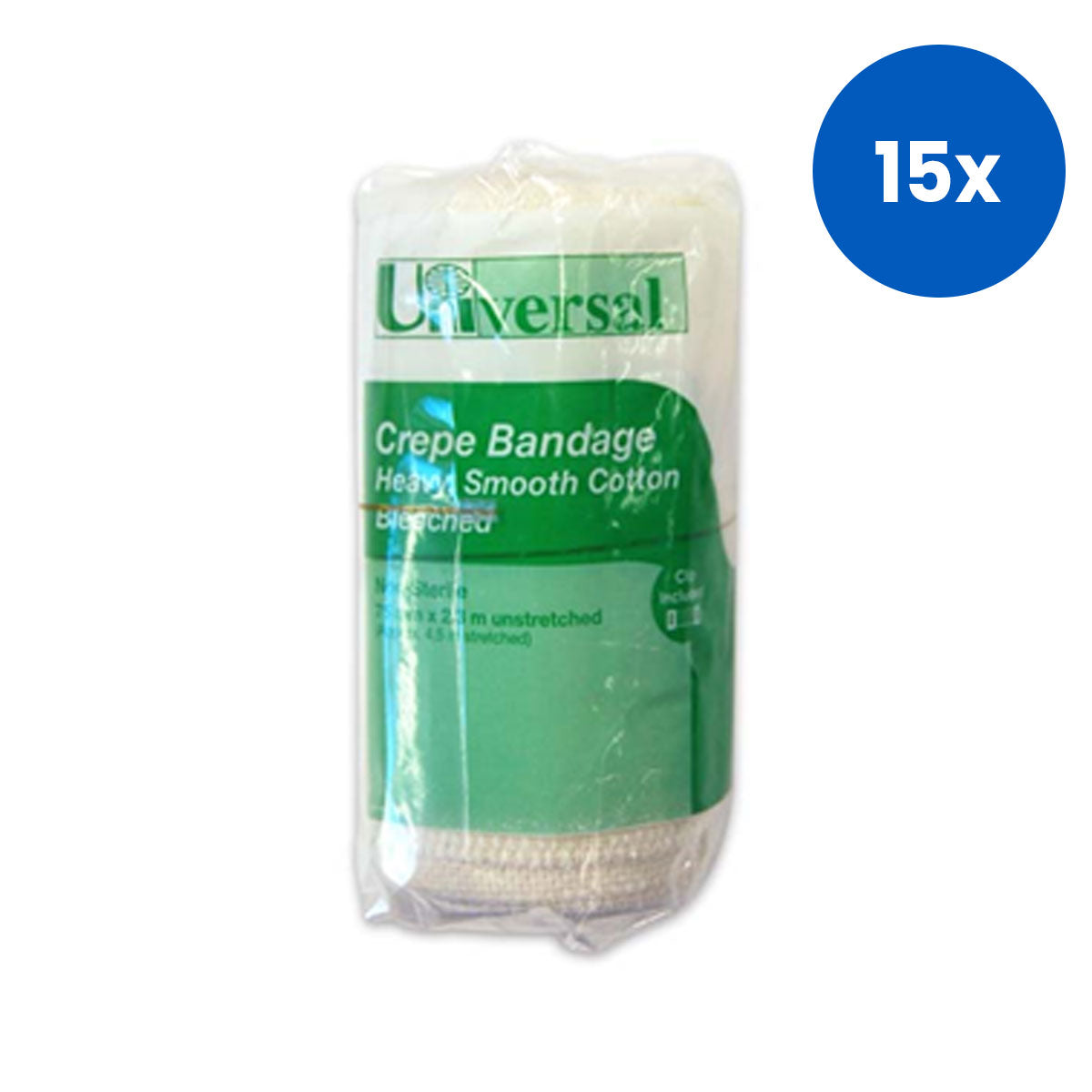 Universal Choice Crepe Bandage Heavyweight 7.5cm x 2.3m Unstretched 4.5m Stretched 12/Pack - White x15