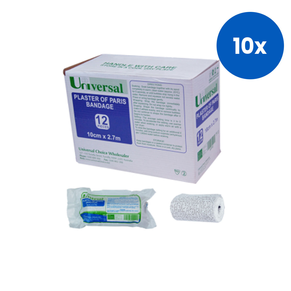 Universal Choice Plaster of Paris Cast Bandage Fast Setting 10cm x 2.7m 12 Pieces/Box - White x10