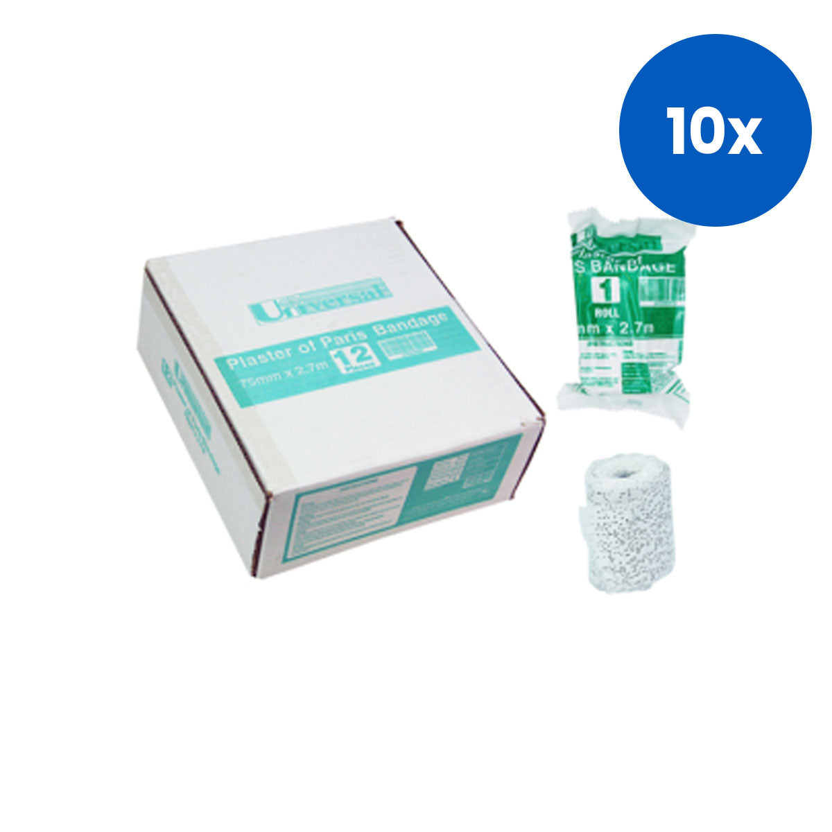 Universal Choice Plaster of Paris Cast Bandage Fast Setting 7.5cm x 2.7m 12 Pieces/Box - White x10
