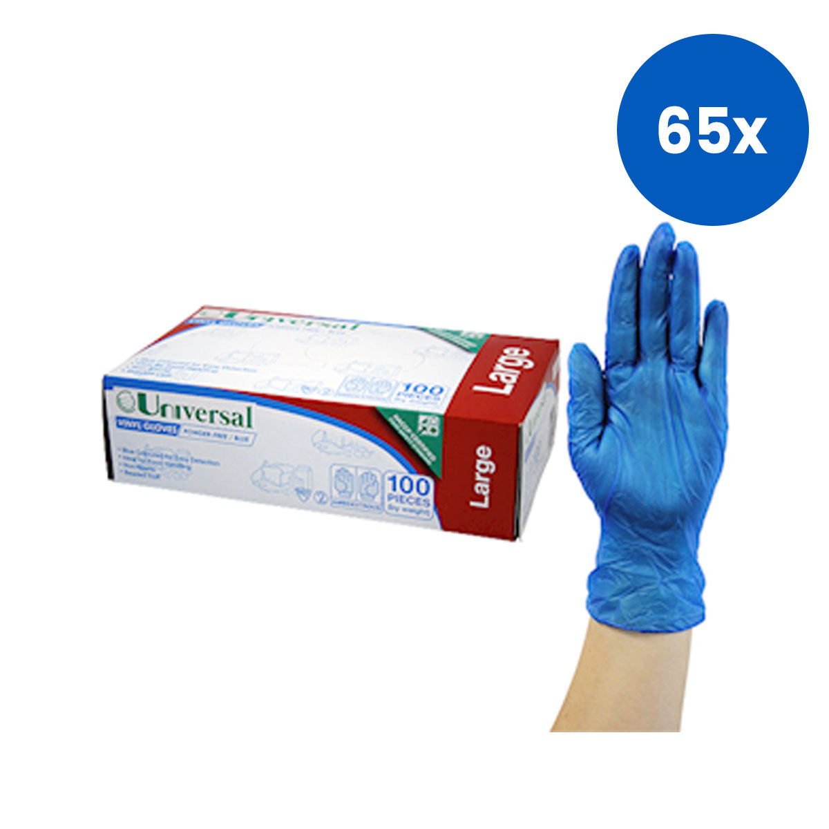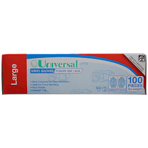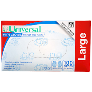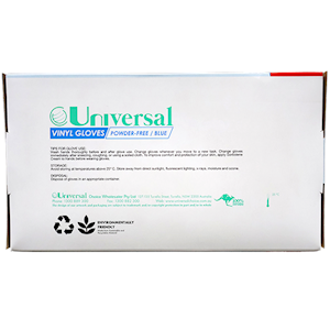 Universal Choice Vinyl Gloves Large Size Recyclable Powder Free 100/Box - Blue x65
