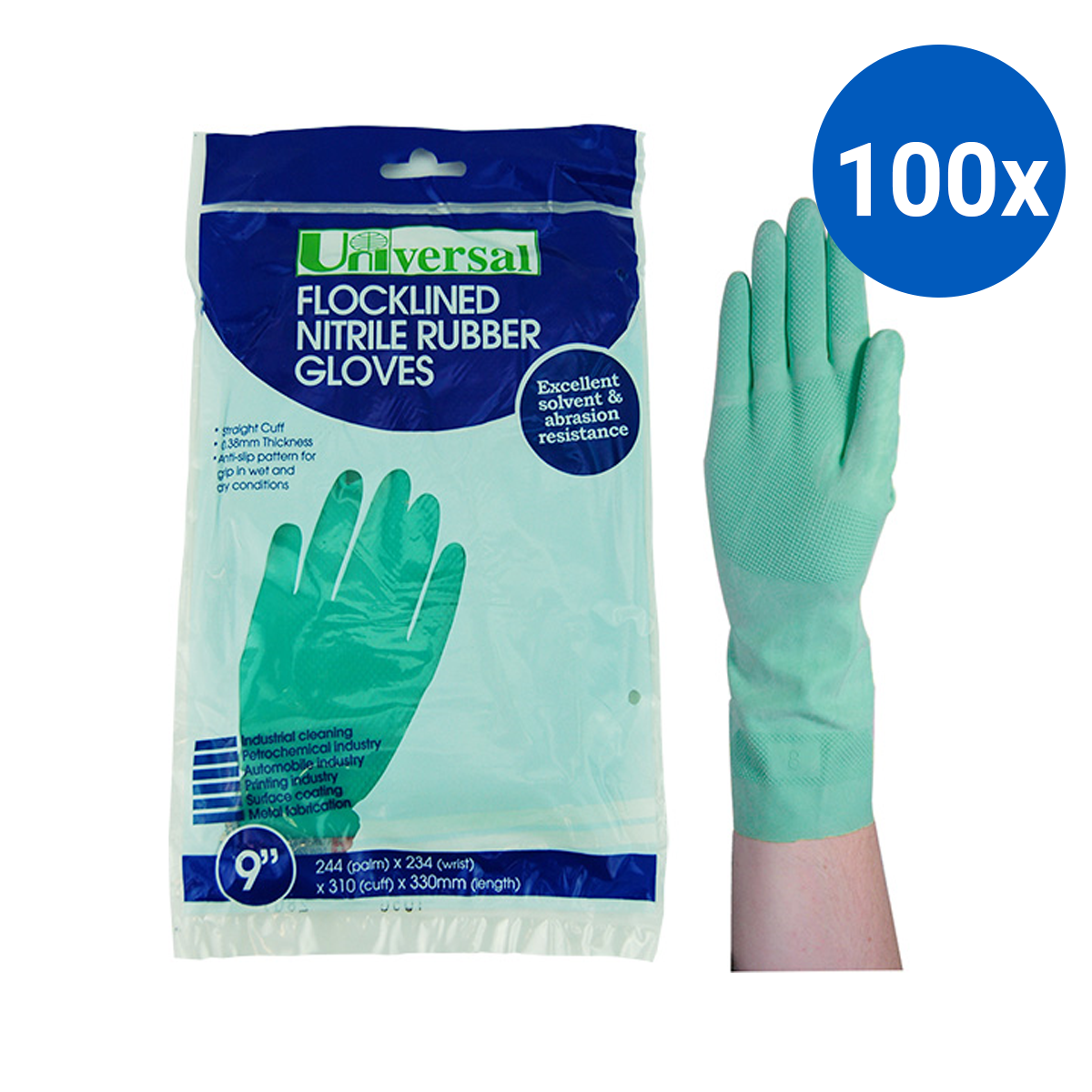 Universal Flocklined Nitrile Gloves Heavy Duty EN374 Size 9 1 Pair/Bag - Green x100