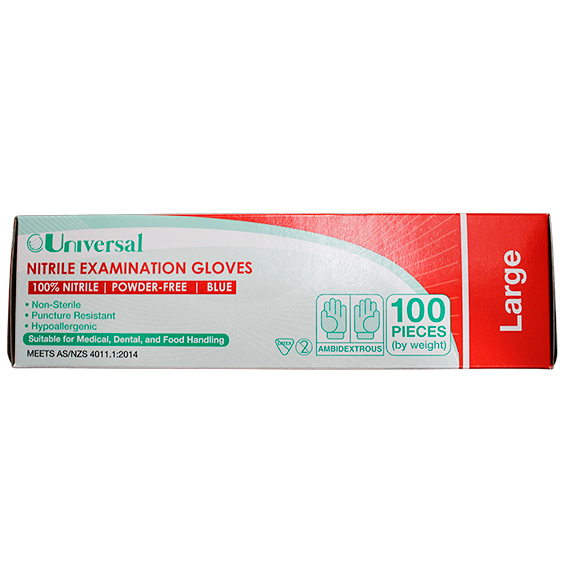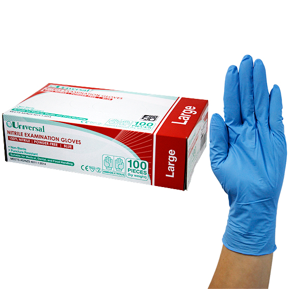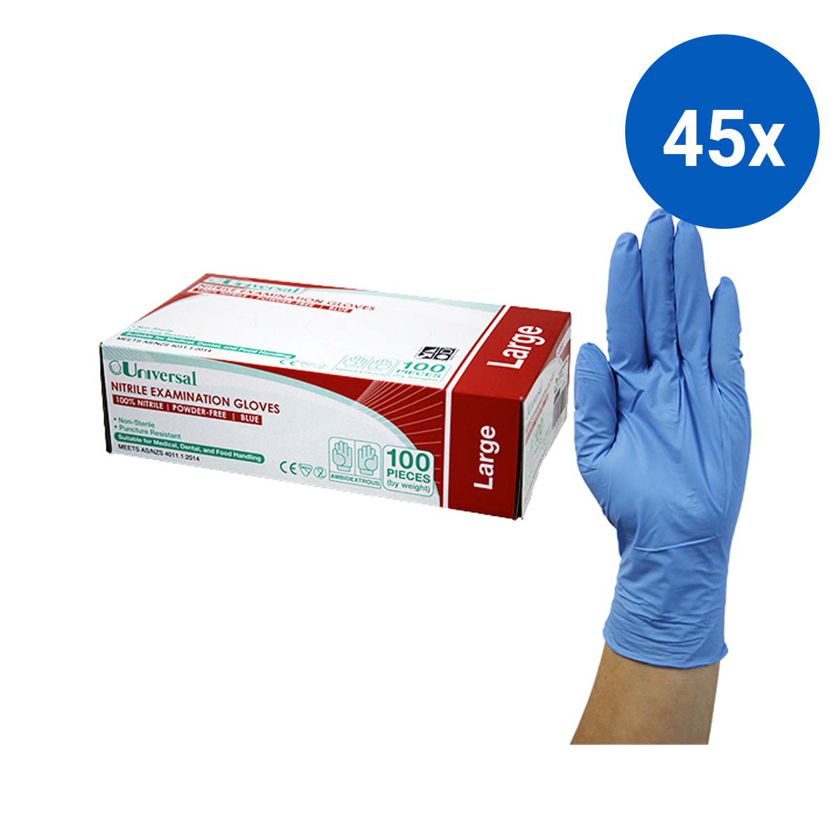 Universal Nitrile Examination Gloves AS NZ Powder Free EN374 Large HACCP 100/Box - Blue x45