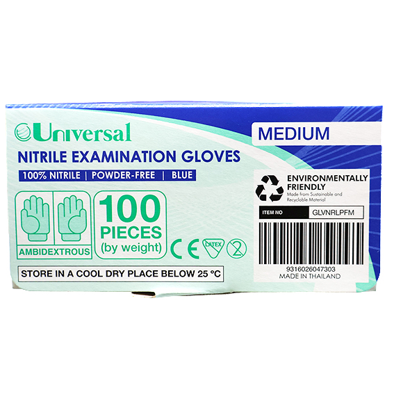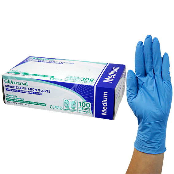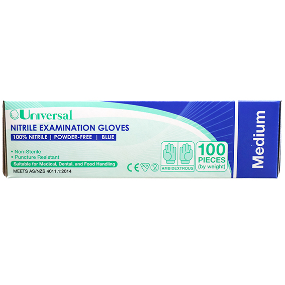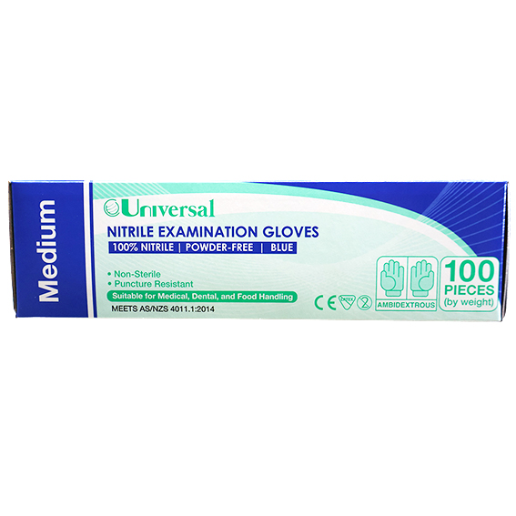 Universal Nitrile Examination Gloves AS NZ Powder Free EN374 Medium HACCP 100/Box - Blue x45