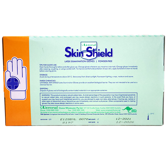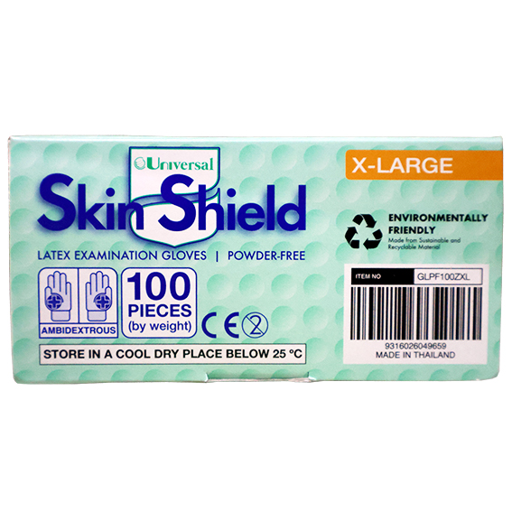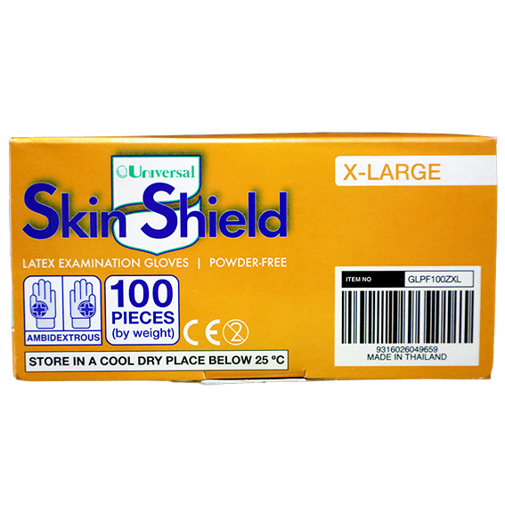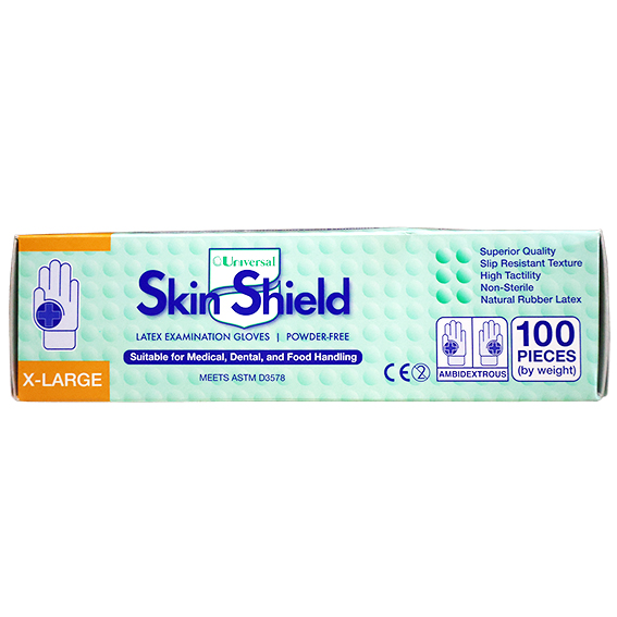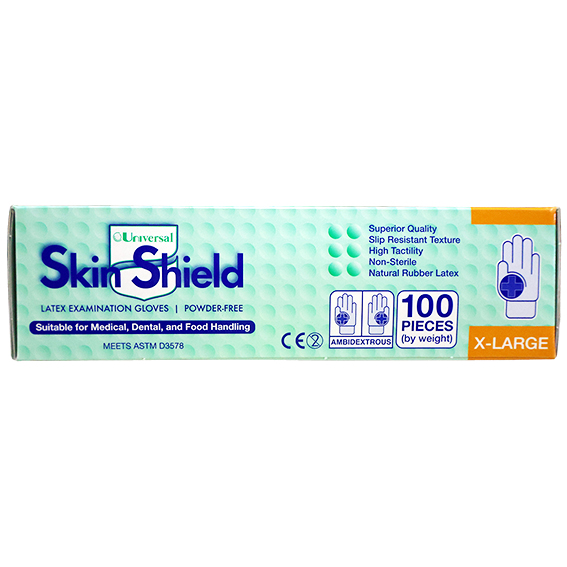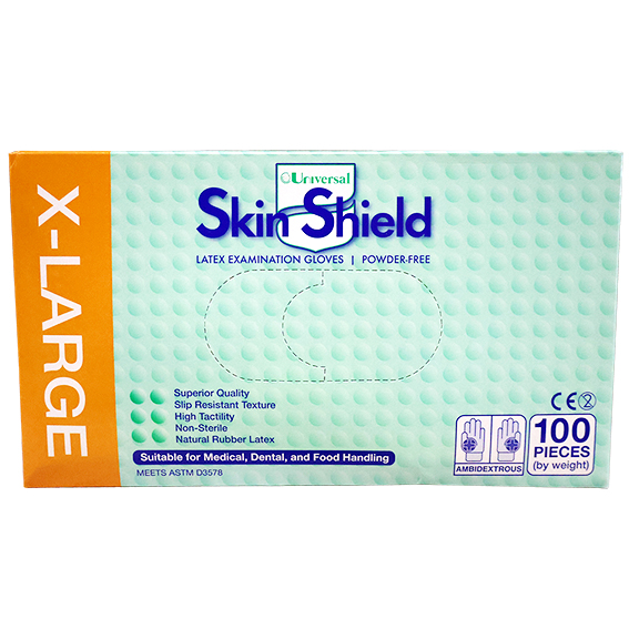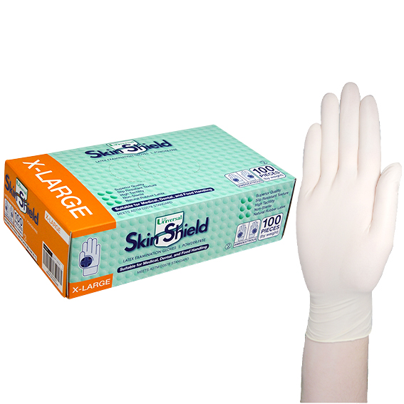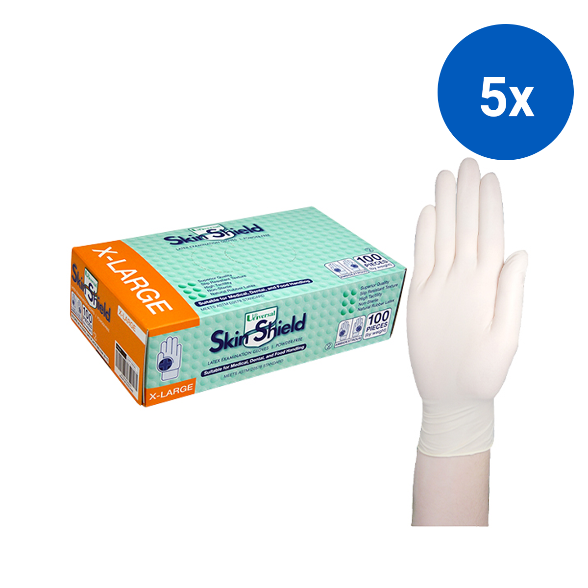 Universal Skin Shield Biodegradable Latex Examination Gloves ASTM Powder Free Extra Large HACCP 100/Box 1000/Carton - Cream x5