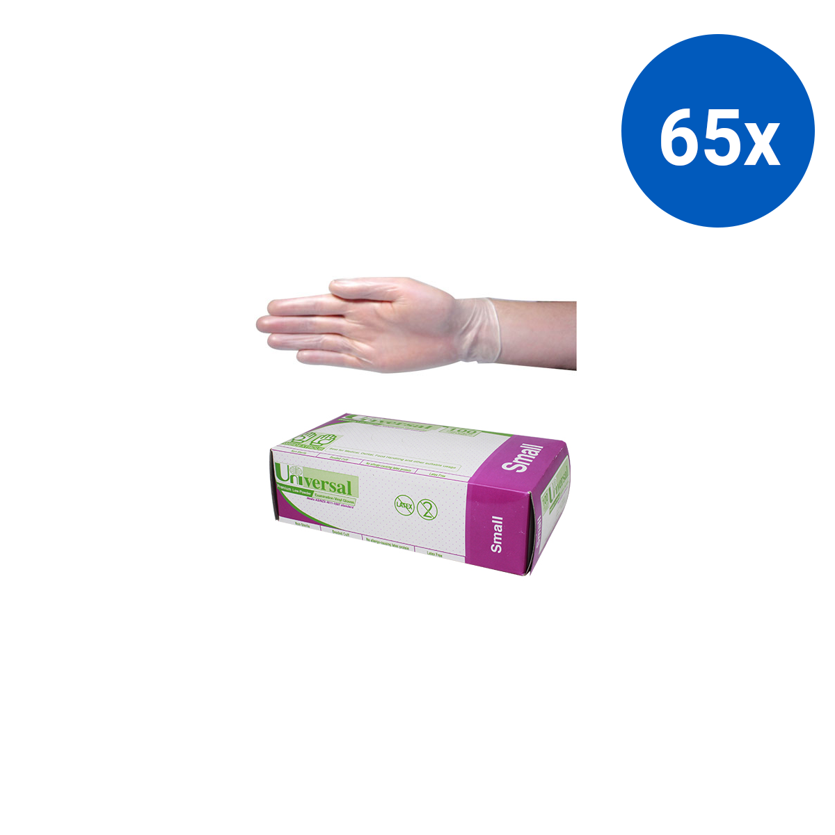 Universal Vinyl Examination Gloves 5.5g TGA 304989 ASTM Small 100/Box - Clear x65