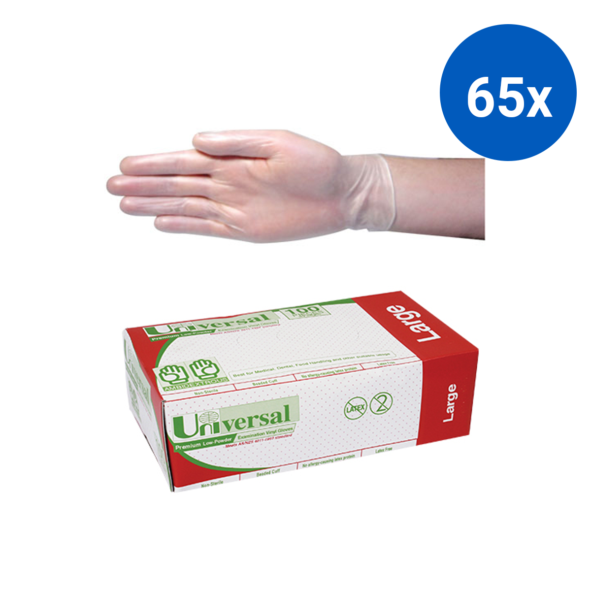 Universal Vinyl Examination Gloves Recyclable 6.5g Large 100/Box - Clear x65