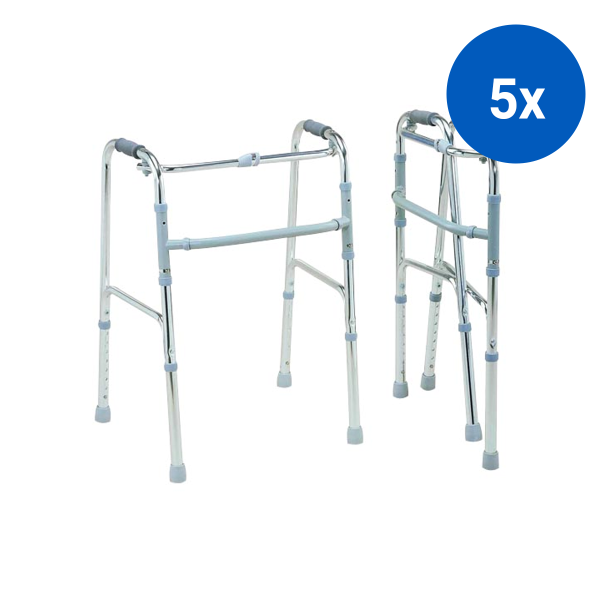 Walking Frame Adjustable Folding Aluminium 56cm Width with Step by Step Function - Silver x5